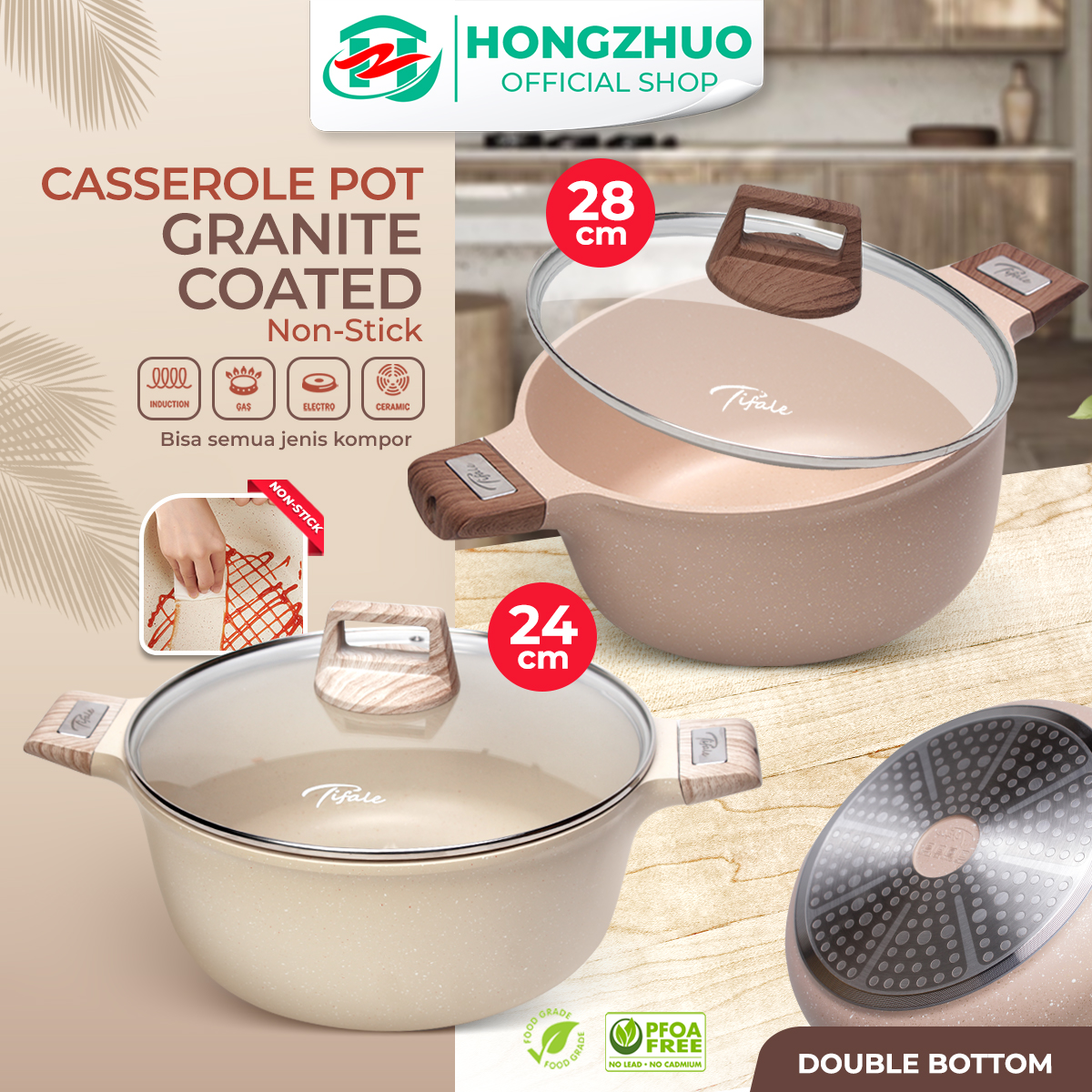 – Performa anti lengket yang luar biasa: Dibuat dari bahan granit yang 100% bebas PFOS dan PFOA. Panci casserole ini dapat digunakan dengan sedikit minyak, memastikan masakan harian Anda selalu aman dan sehat.
