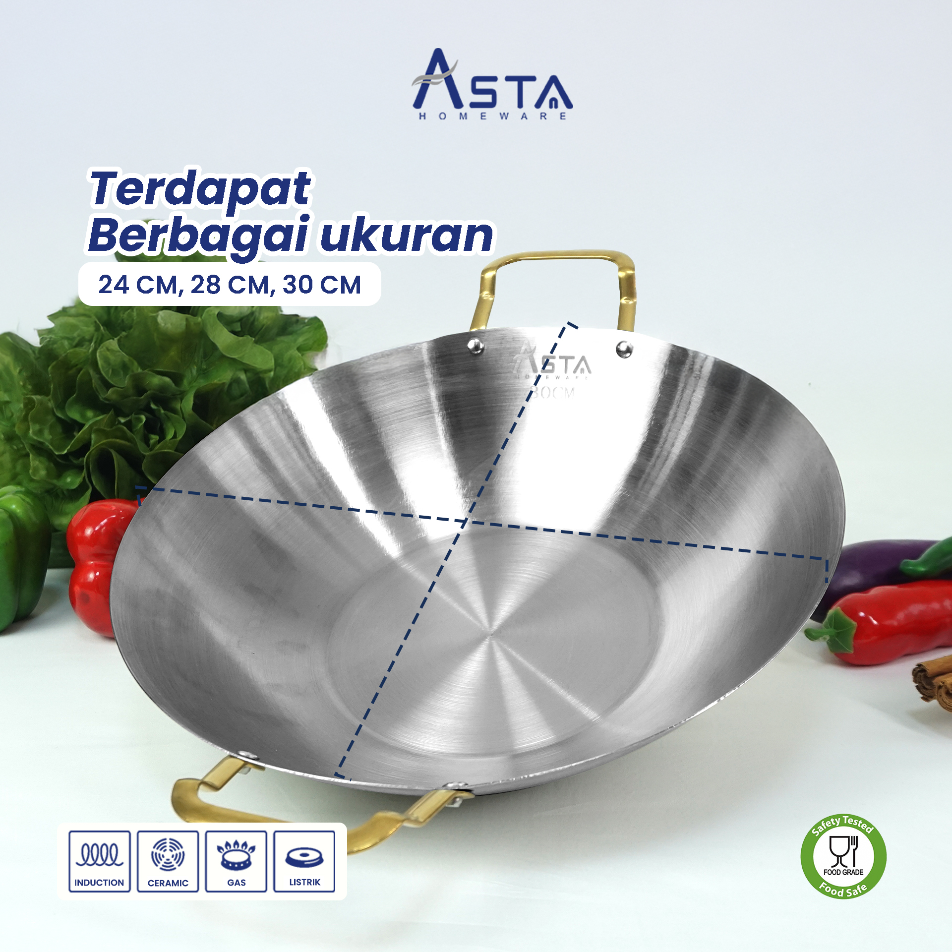 Deskripsi Wajan Stainless Steel – Panci Penggorengan Flat Wok – Asta :